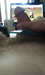 "hey jack. man i'm really into my bate. got my albolene, bottle of taiwan blue, porn, cumrag undies (with fresh load from yesterday) and of course my hard hairy greased-up cock! fucking lovin it and had to snap some pics. these are from about an hour and a half ago when i was just getting started. that morning wood post on your blog was gettin me primed. my first hit of poppers was to your come shot pic from 7/8/09. that's one hot pic! your cock and bush look awesome. the last is a close up of me tightening the underwear around my balls. never gave it much thought but maybe i should try a cockring next. from your pics i see you like to use em. what do you like about em? Anyway back to the bate.